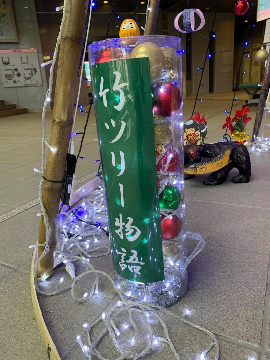 今年のクリスマスツリーがとうとう完成しました!!その名も☆☆「竹ツリー物語」☆☆ツリーの中には、皆さん良く知っている、昔ばなしの登場人物たちが!ぜひお立ち寄りください!